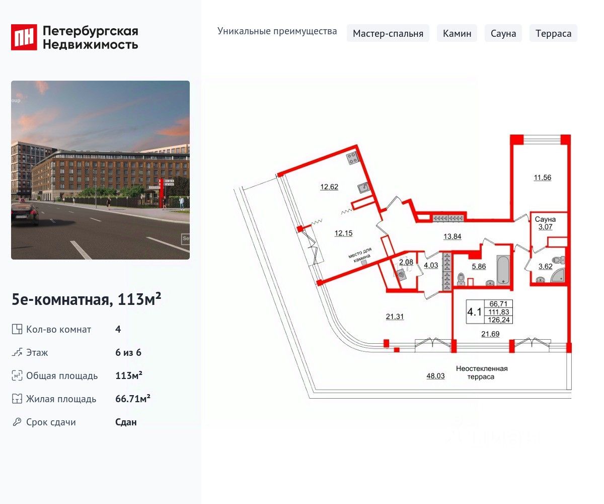 • Уникальные квартиры пентхаусы, квартиры с террасами и каминами
