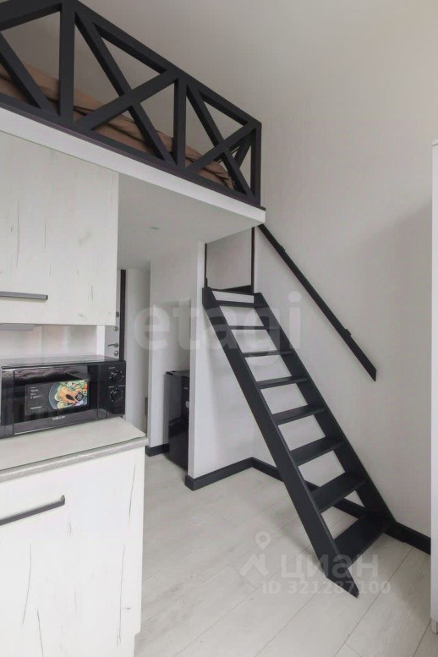 Уютная комната со свежим ремонтом в современном стиле готова к заезду: есть вся необходимая мебель и техника. Особенность удобная двухуровневая организация пространства: на втором ярусе расположена кровать. Внизу зона гостиной и кухни, ванная комната.