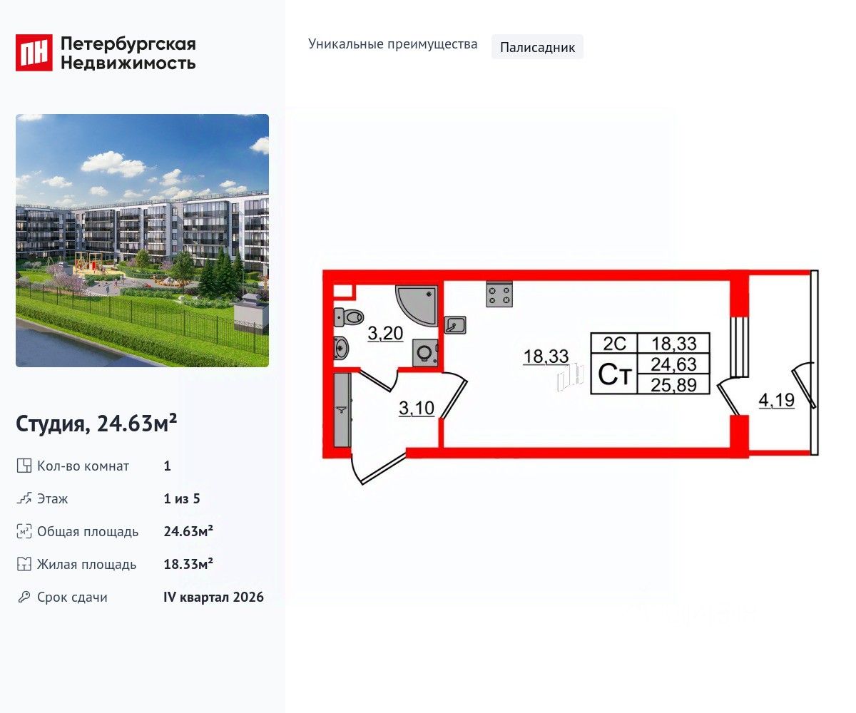 Продается просторная студия от застройщика в жилом комплексе "Парадный ансамбль" в престижном Московском районе.