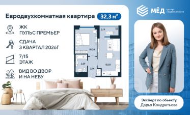 Евродвухкомнатная квартира с отделкой в ЖК Pulse Premier