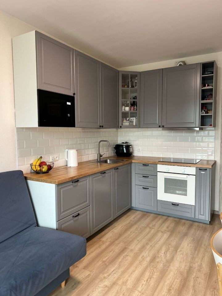 Вся встроенная техника: варочная панель, духовой шкаф, вытяжка и микроволновка (все от IKEA).