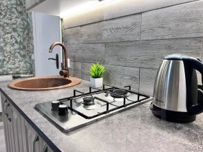 Большая просторная кухня гостинная 12м придаёт ощущение пространства и уютного домашнего очага.Фотографии говорят сами за себя!Разнообразие световой гаммы придает полный комфорт