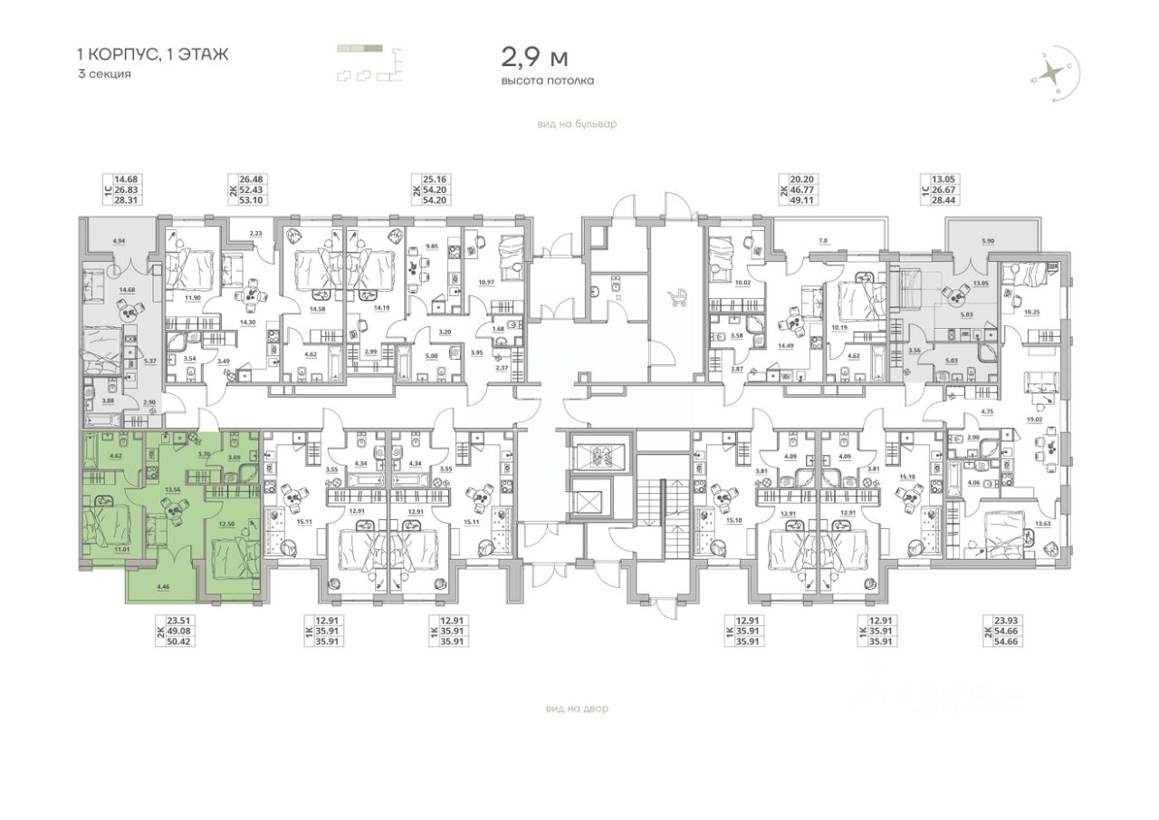 Продаётся 2-комнатная квартира 205, общей площадью 50.42 кв.м., на 1 этаже. Дом комфорт-класса, 12 этажей, в окружении леса и малоэтажной застройки. Проект с умным домом.