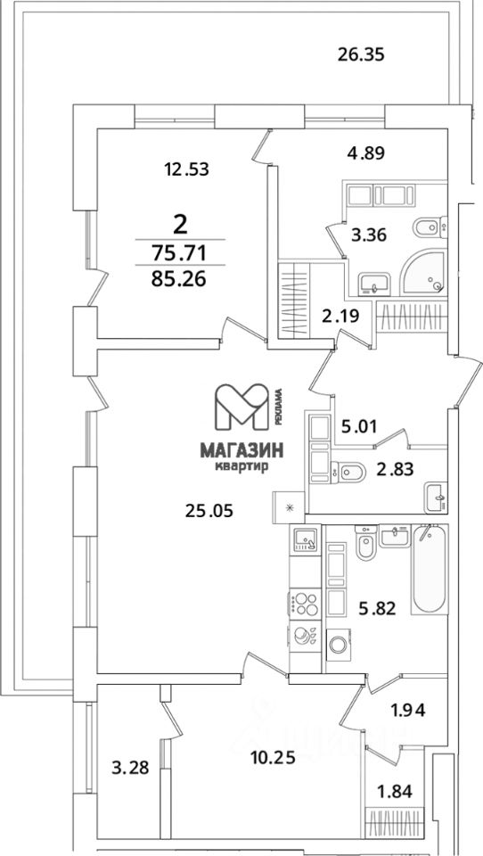 Ваш шанс купить по-настоящему уникальную квартиру! В продаже просторная квартира 75.35 м². Квартира без отделки — это ваше преимущество! Вы сможете создать идеальное пространство под себя: выберите стиль, материалы и планировку, которые отражают ваш характер.