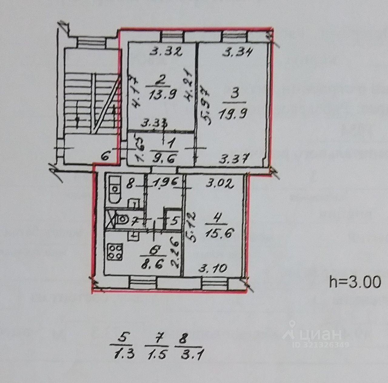 + 3 изолированных комнаты площадью - 19.9, 15,6, 13.9