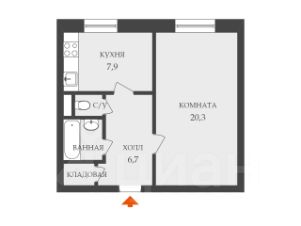 Просторная комната 20,3 м2, кухня 7,9 м2