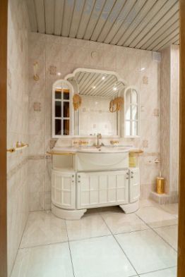 Кухня выполнена в итальянском стиле, с массивом дуба и витражными стеклами. В ней установлена современная техника производства Германии: плита AEG с 40 функциями, холодильник AEG, посудомоечная машина AEG и мельница под мойкой из США. В ванной комнате — оригинальная джакузи Джейша с медицинским массажем и позолотой 24 карата, а также стильный унитаз и шкафчик от Gollywood, все производства Италии.