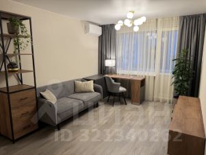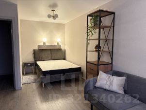 В основной комнате диван, стеллаж, тумба под ТВ и рабочий стол - трансформер. Отдельная спальная зона с полноценной кроватью.