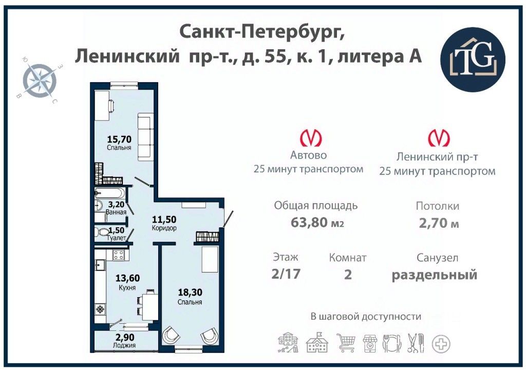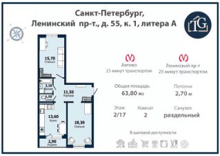 Предлагается к продаже двухкомнатная квартира на Ленинском проспекте