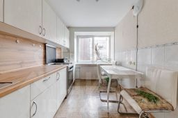 Общая площадь квартиры — 67,4 кв. м, жилая — 42,3 кв. м, кухня — 9 кв. м. Комнаты изолированные, их площади — 16,5, 10,1 и 15,7 кв. м. Есть лоджия и раздельный санузел. Окна выходят на улицу и во двор. Квартира не угловая, с косметическим ремонтом — заезжай и живи!
