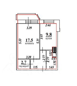 Общая площадь 37,6 кв.метра (без учета балкона). Кухня правильной формы 10 кв.