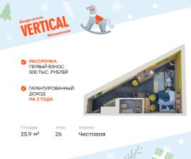 Vertical Московская - инновационный апарт-отель, сочетающий в себе современную недвижимость и готовый бизнес. Расположенный в самом сердце Московского района на улице Орджоникидзе. Великолепная инфраструктура близ комплекса и удобная транспортная сеть создают идеальные условия для насыщенной жизни резидентов в наших апартаментах и инвестирования.