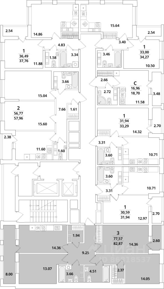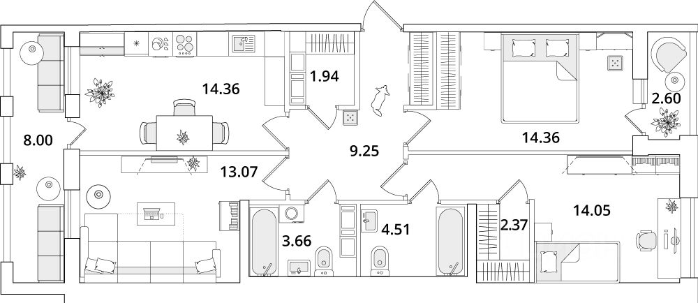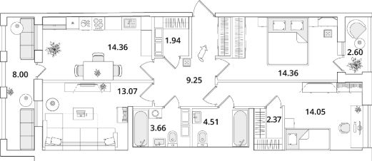 Квартира находится в 16 этажном доме, в Корпус 2-Cube на 13 этаже. Общая площадь квартиры 84,00 кв.м.