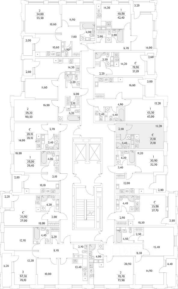 Квартира находится в 13 этажном доме, в Корпус К5 - Тайм Сквер на 8 этаже. Общая площадь квартиры 21,10 кв.м.
