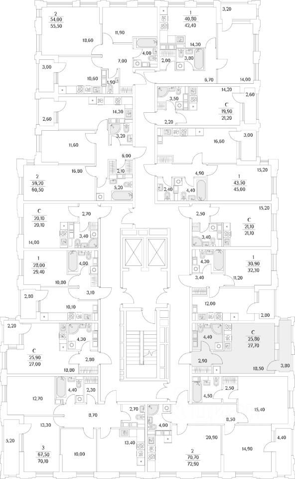 Квартира находится в 13 этажном доме, в Корпус К5 - Тайм Сквер на 11 этаже. Общая площадь квартиры 27,70 кв.м.
