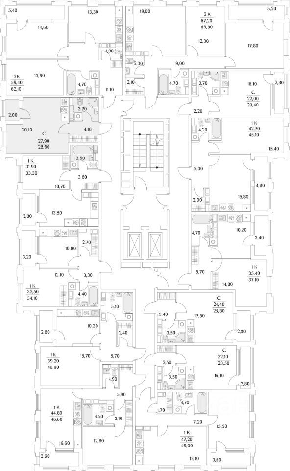 Квартира находится в 13 этажном доме, в Корпус К4 - Тайм Сквер на 5 этаже. Общая площадь квартиры 28,70 кв.м.