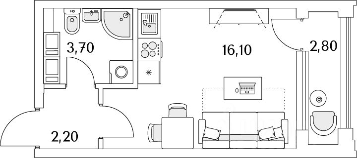 Квартира находится в 13 этажном доме, в Корпус К4 - Тайм Сквер на 10 этаже. Общая площадь квартиры 23,40 кв.м.