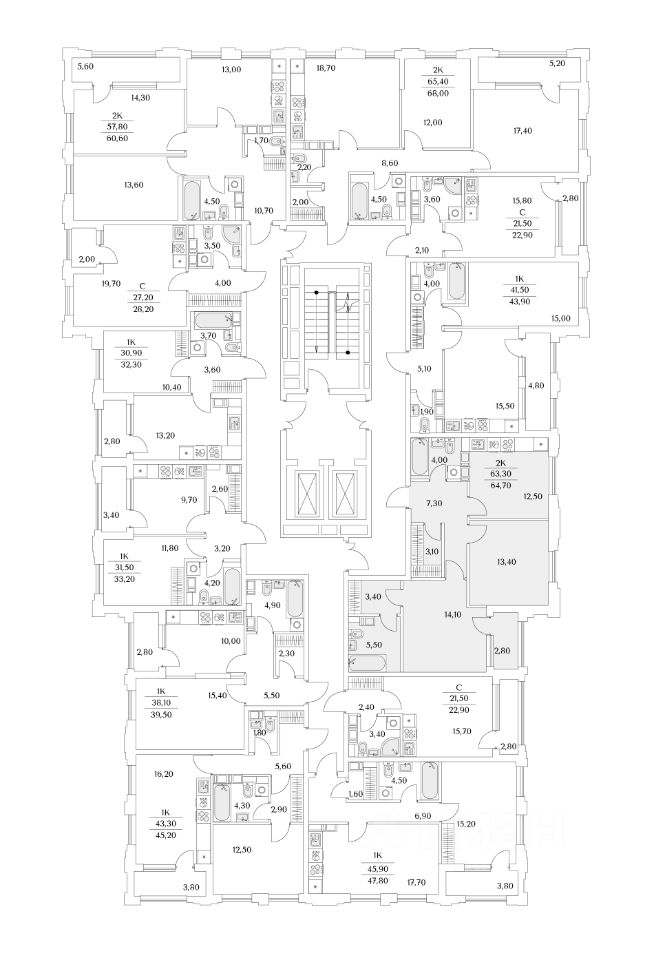Квартира находится в 13 этажном доме, в Корпус К8 - Тайм Сквер на 9 этаже. Общая площадь квартиры 64,90 кв.м.