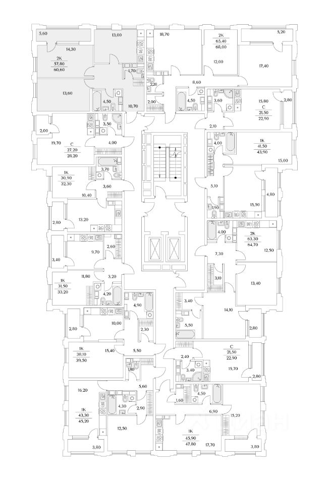 Квартира находится в 13 этажном доме, в Корпус К8 - Тайм Сквер на 9 этаже. Общая площадь квартиры 60,80 кв.м.