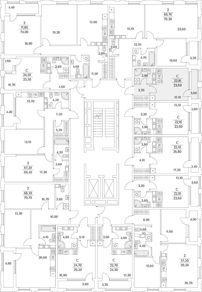 Квартира находится в 13 этажном доме, в Корпус К3 - Тайм Сквер на 11 этаже. Общая площадь квартиры 23,90 кв.м.