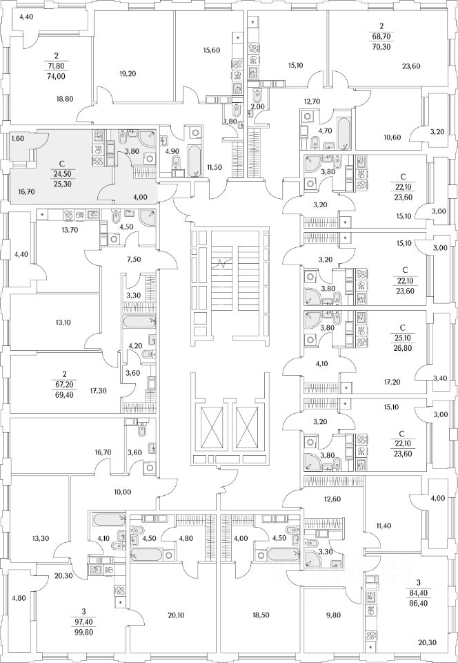 Квартира находится в 13 этажном доме, в Корпус К3 - Тайм Сквер на 12 этаже. Общая площадь квартиры 25,60 кв.м.