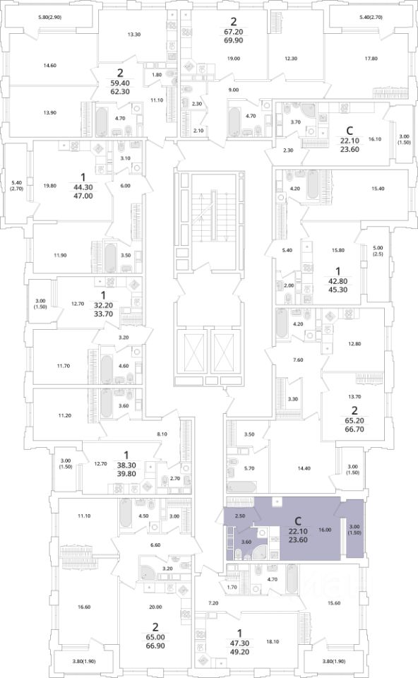 Квартира находится в 13 этажном доме, в Корпус К1 - Тайм Сквер на 8 этаже. Общая площадь квартиры 23,60 кв.м.