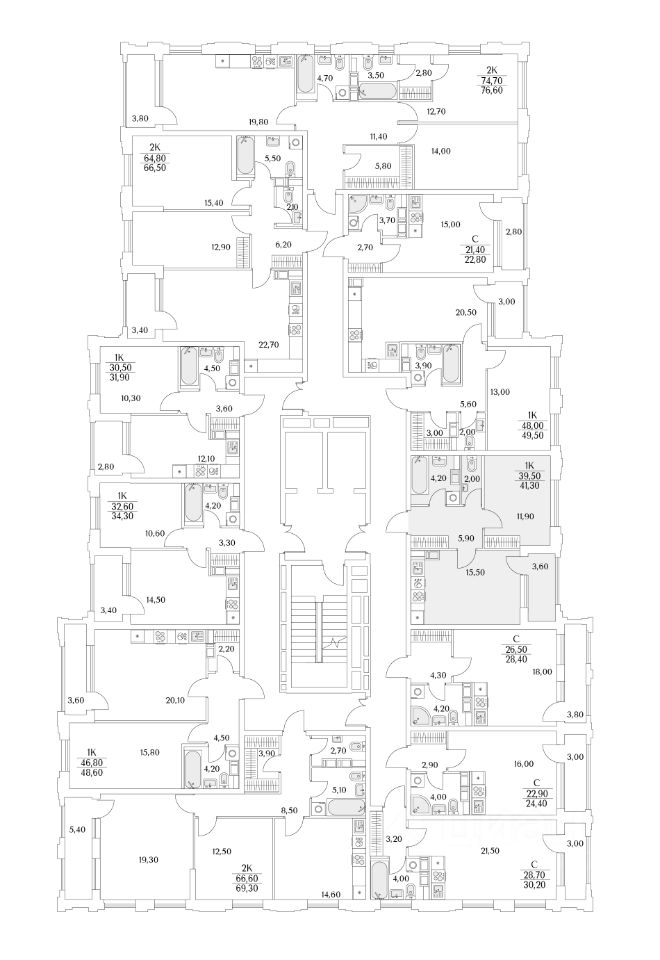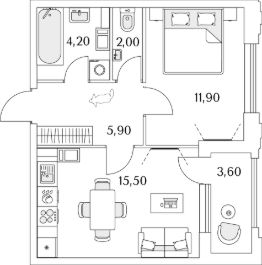 Квартира находится в 13 этажном доме, в Корпус К10 - Тайм Сквер на 11 этаже. Общая площадь квартиры 41,30 кв.м.