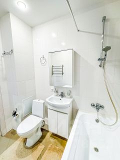 В санузле установлена акриловая ванная, что является огромным преимуществом в быту.