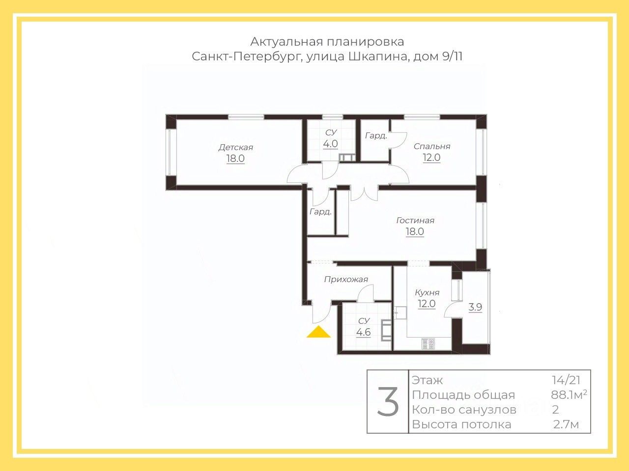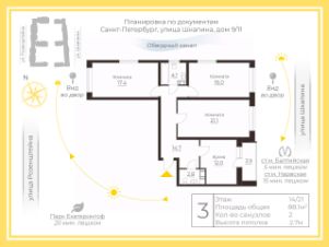 Просторная семейная квартира с тремя комнатами и двумя санузлами, один из которых - с окном!