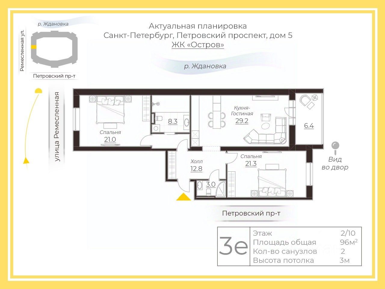 Рядом с домом находится обустроенная набережная реки Ждановка и выезд с острова через мост Бетанкура.