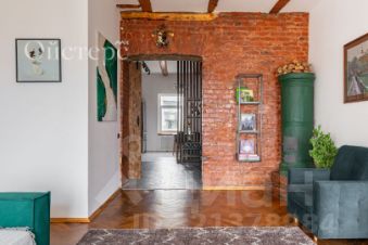 - крафтовый дизайн в индустриальном стиле: фактурная кирпичная кладка, потолки оформлены в корабельной стилистике, перегородки в интерьерах сделаны из декоративных реек и стеклоблоков, деревянная амбарная дверь обрамляет вход в гостиную, на полу — стильная плитка с подогревом и натуральный паркет. Выполнено многоуровневое освещение, квартира укомплектована мебелью и техникой.