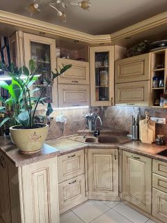 • Кухня 14,4 м2 с выходом на просторный балкон (5.5 м2). Остаются: кухонный гарнитур из массива ясеня (доводчики и фурнитура Blum), холодильник Samsung и встроенная техника марки Bosch: посудомоечная машина, индукционная плита, духовой шкаф;