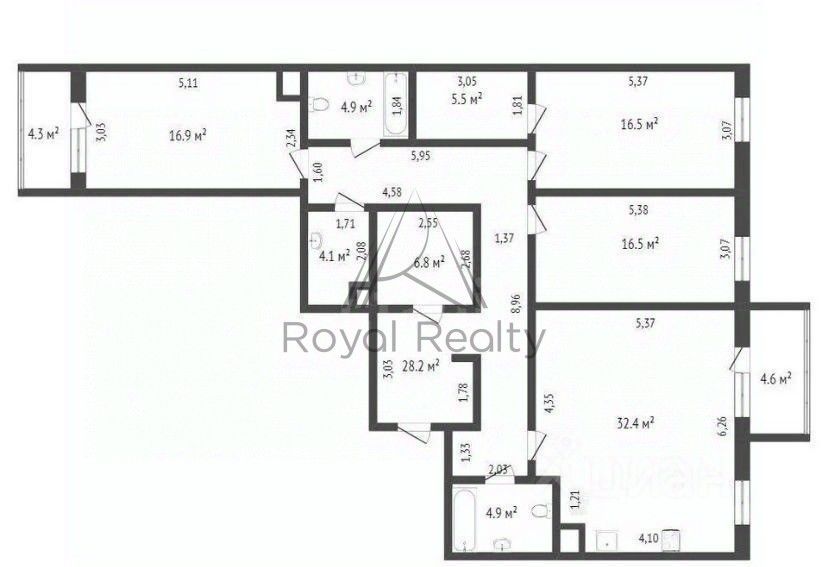 • Два санузла по 4,9 м²