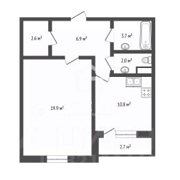 Общая площадь 45,9 м² (жилая 19,9 м², кухня 10,8 м²)