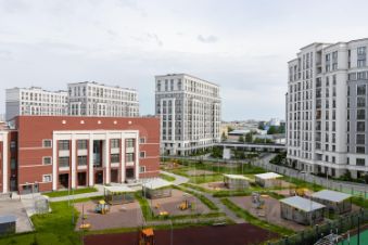Во дворе комплекса собственный детский сад и школа, уже работают