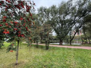 Очень зеленый двор и район в целом, много цветов. Рядом раскинулся Альпийский сквер с горящими рябинами и прудом с уточками, где много прогулочных дорожек и скамеек для созерцания красоты.