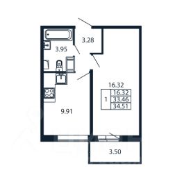 Прямая продажа от застройщика! Готовая Однокомнатная квартира 32.6 кв.м с кухней 9.91 кв.м с чистовой отделкой на 8 этаже в сданном ЖК "Полис Лаврики".