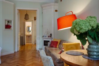 продается квартира с камином, эркером, высокими потолками и сохранённой лепниной. Это бывший доходный дом, где в разное время проживали известные люди - режиссер Н. Акимов, критик В. Стасов, писатель Е. Шварц, а также Анна Тимирева, возлюбленная Колчака.