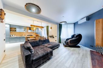 Кухня полностью оборудована мебелью и техникой Liebherr, Smeg, Neff (газовая варочная панель, ПММ, духовой шкаф, СВЧ печь, холодильник, встроенная кофемашина, вытяжка). Дизайнерский стол из Индонезии, массив дерева. В гостиной диван от Rolf Benz. ТВ Samsung 85 с домашним кинотеатром. В мастер-спальне мебель и кровать от Thielemeyer, матрас Tempur размером 200*200 см. В детской комнате уютно обустроены игровая, спальная и учебная зоны. Шкафы в прихожей от премиального бренда Tomasella. С/у оборудованы сантехникой Grohe, Duravit, в постирочной СМА и сушильная машина от Miele