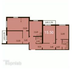 Жилая площадь 60.9 кв.м. ( 13.5+19.5+15.5+12.4) все комнаты изолированные, правильной формы.