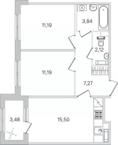 Продаётся 2-комнатная квартира в строящемся доме (Корпус 1 (2 очередь)), срок сдачи: IV-кв. 2027, общей площадью 52.85 кв.м., на 3 этаже. Новый жилой комплекс "Дубровский" от застройщика "КВС" расположен по адресу: Россия, Санкт-Петербург, Пушкин, Гусарская улица