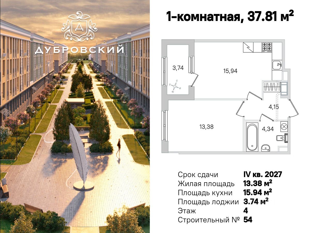 Во второй очереди "Дубровского" предусмотрен большой выбор планировок: от уютных студий до просторных четырехкомнатных квартир с двумя санузлами.