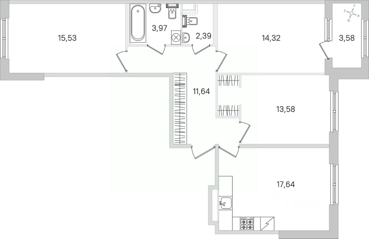 Продаётся 3-комнатная квартира в строящемся доме (Корпус 1 (2 очередь)), срок сдачи: IV-кв. 2027, общей площадью 80.86 кв.м., на 1 этаже. Новый жилой комплекс "Дубровский" от застройщика "КВС" расположен по адресу: Россия, Санкт-Петербург, Пушкин, Гусарская улица