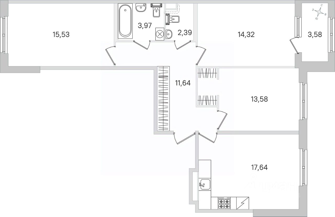 Продаётся 3-комнатная квартира в строящемся доме (Корпус 1 (2 очередь)), срок сдачи: IV-кв. 2027, общей площадью 80.86 кв.м., на 1 этаже. Новый жилой комплекс "Дубровский" от застройщика "КВС" расположен по адресу: Россия, Санкт-Петербург, Пушкин, Гусарская улица