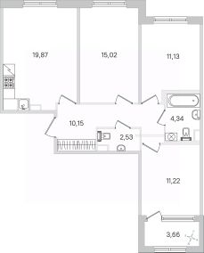 Продаётся 3-комнатная квартира в строящемся доме (Корпус 1 (2 очередь)), срок сдачи: IV-кв. 2027, общей площадью 76.09 кв.м., на 1 этаже. Новый жилой комплекс "Дубровский" от застройщика "КВС" расположен по адресу: Россия, Санкт-Петербург, Пушкин, Гусарская улица