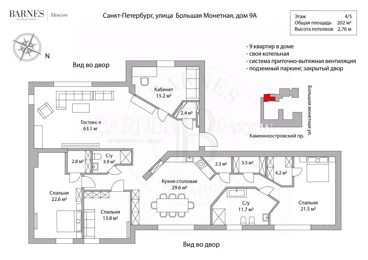 Эта просторная квартира площадью 202 кв.м расположена на 4 этаже клубного дома, построенного по индивидуальному проекту в 2002 году. В доме всего 9 квартир, что обеспечивает уютную атмосферу и высокий уровень безопасности.