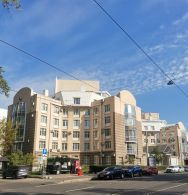 высокий первый этаж, отгороженный газоном от пешеходных дорожек