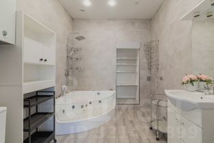 В квартире был произведен ремонт. Все полы и стены выровнены. На окна установлены стеклопакеты с москитными сетками. Поменяна вся электрика и сантехника. В квартире два сан. узла. В большом сан. узле установлена ванна с гидромассажем.