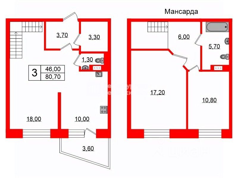 В продаже многоуровневая квартира-трансформер, два отдельных входа, недалеко от метро, общей площадью 80,7 кв м.