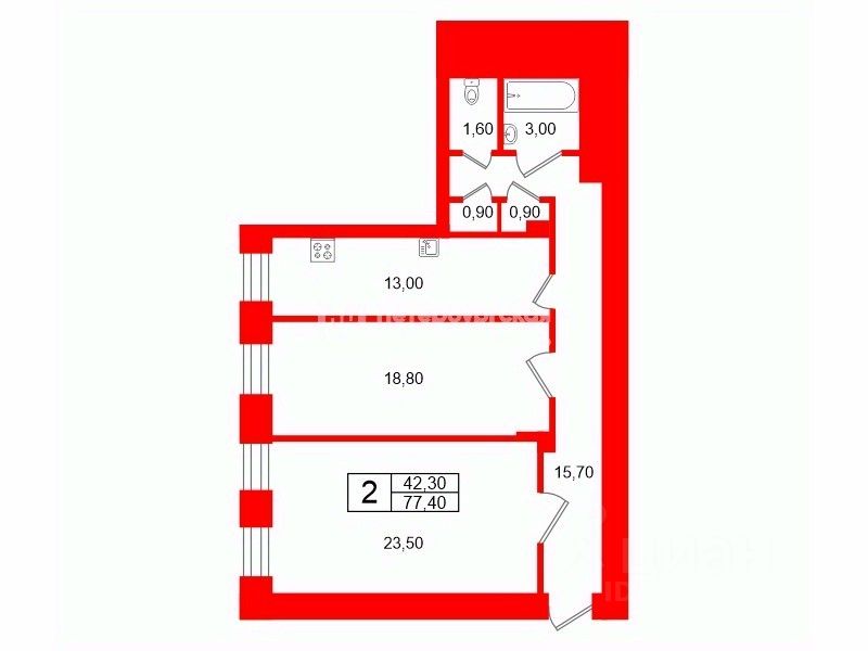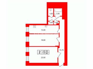 * Две изолированные комнаты: 23,5 кв. м. и 18, 8 кв. м.
